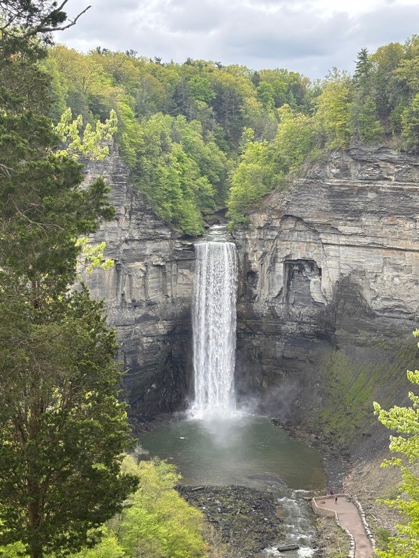 I drove 4 hours through some beautiful countryside from Mt Greylock to Taughannock Falls state park in NY. This is the highest waterfall east of the Rockies. The gorge is steep and the revitalized home to many Peregrine falcons. I hiked the trails which are very wide paths in reality there was some elevation and I hiked all of them which included going in and out of the gorge so it was a good workout. The trails weren’t as long as I expected given the write-up I saw so I finished early and in the rain. The man who own the land (a beautiful path through the woods to a meadow along a creek!) let me stay in his oversized vinyl tent since it was raining and no one happened to be renting it!