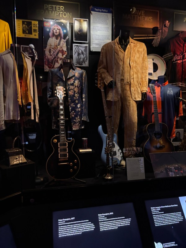 One of my closest friends who left us a number of years ago was a musician, and I remember listening to music with him such as Ozzy Osbourne and the Doobie Brothers. Listening to their music brought a smile to my face and a bit of a void in my soul knowing he’s gone. For those who haven’t been, you can find your favorite bands who are in the hall and listen to mini video documentaries and their induction ceremonies. I could have spent a year watching those videos and listening to the music. Of course there was all sorts of memorabilia. They have plaques with every bands name and band member’s name who are inducted. For example, Van Halen had both David Lee Roth and Sammy Hagar‘s signature on their plaque.