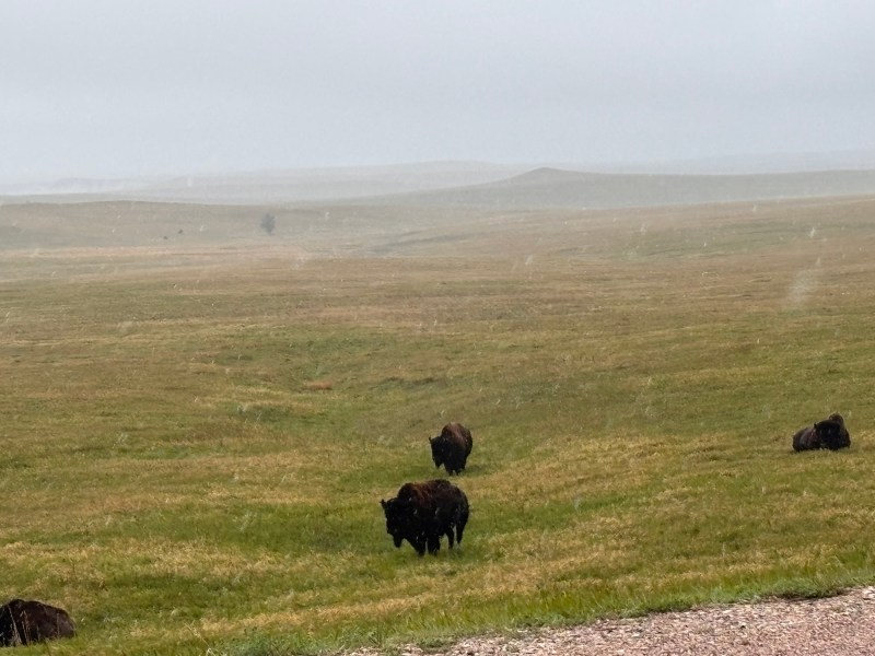 If there was a drought in South Dakota, as I reported yesterday regarding the Sioux Falls, then there isn’t one now! Apparently my mystique brought along some precipitation to the state! It rained yesterday morning all last night and then a mist or heavy rain almost all day today as I traveled towards the Badlands!