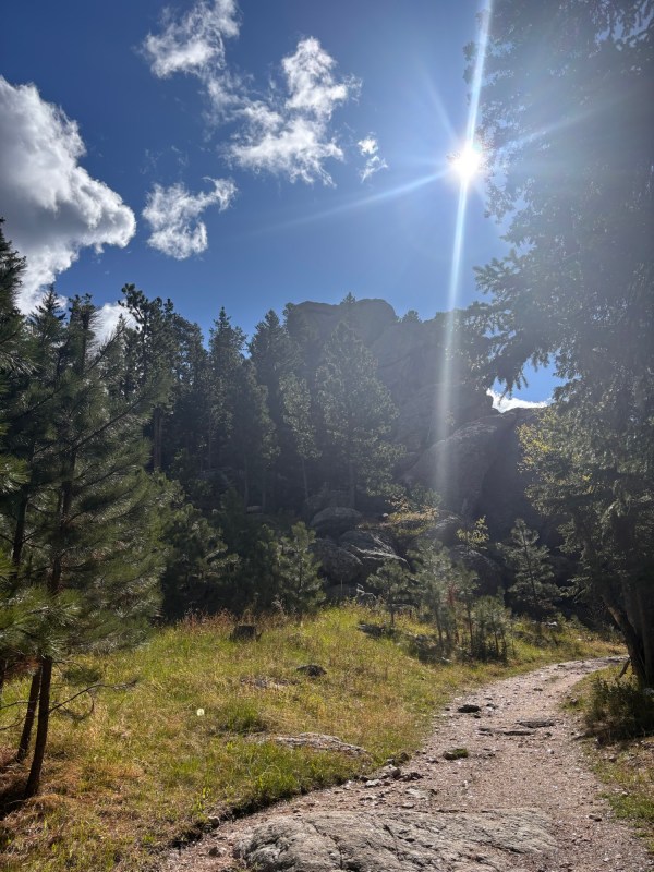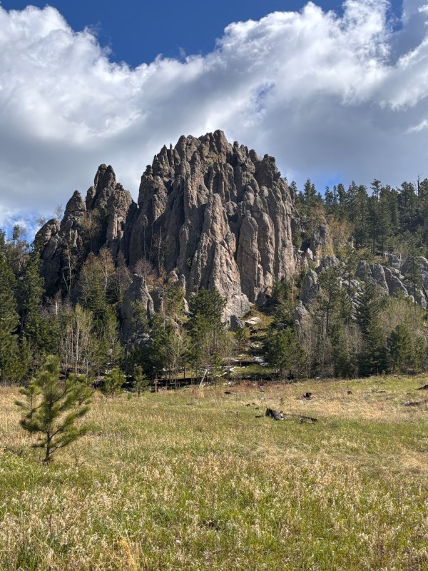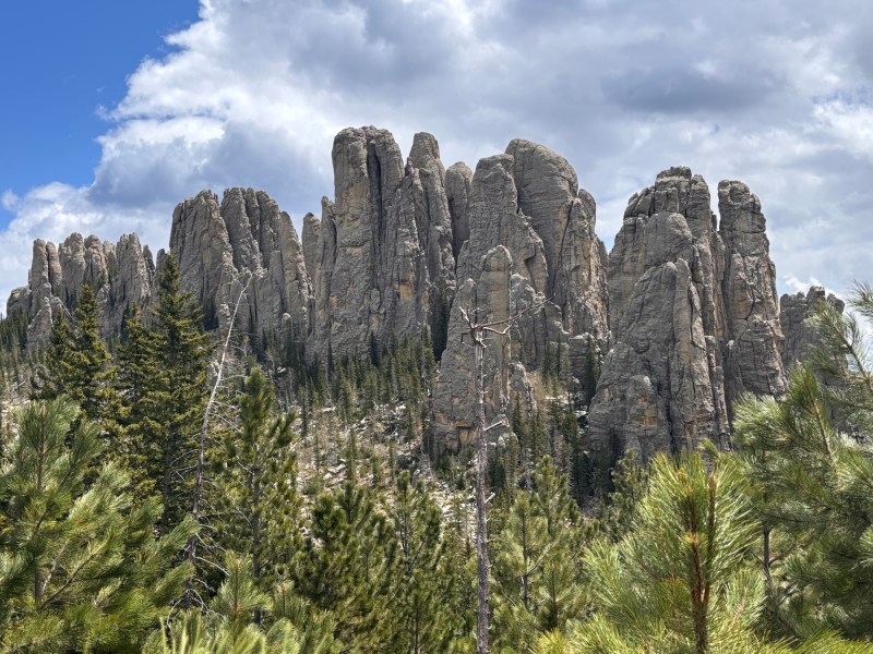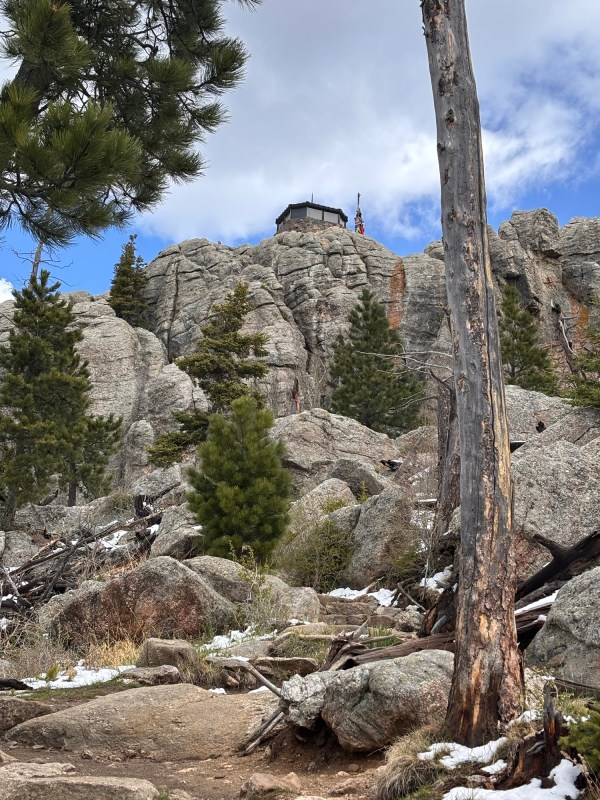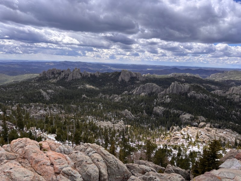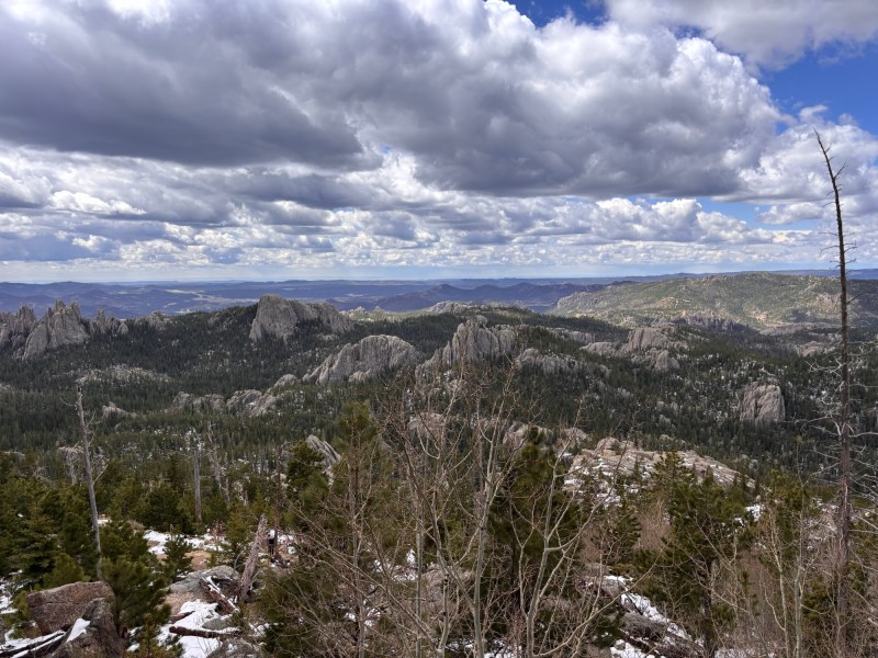 On the Black Elk Peak trail, there is an off shoot trail to what is called Little Devils Tower. This added about an hour to my hike and included some scrambling along rock face with some snow. It was invigorating. The views were spectacular and it was a little disheartening looking across a valley and see the tower on the top of black elk peak where I still had to hike!