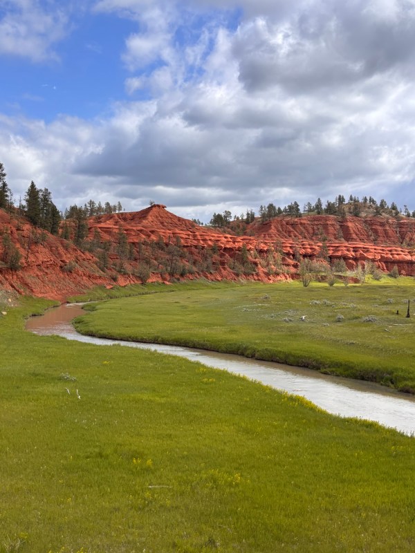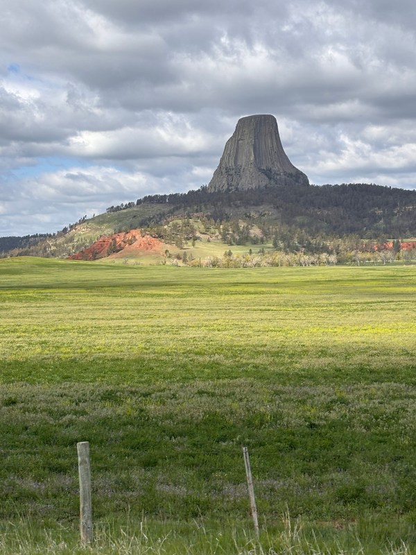 I left my campsite in Hewlett, Wyomingand took a relatively short drive to Devils Tower National Monument. One of the most memorable movies of my childhood was “ Close Encounters of the Third Kind” and I wanted to see this site in person. It is so unique. I’ll provide a few pics. you’ll have to look closely and you’ll see rock climbers. There were four or five of them there today. I took about 150 photos so I’ll do my best to pick a decent shot for you. Once again, the landscape is beautiful around here.